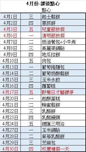 【檔案】4月份課後點心